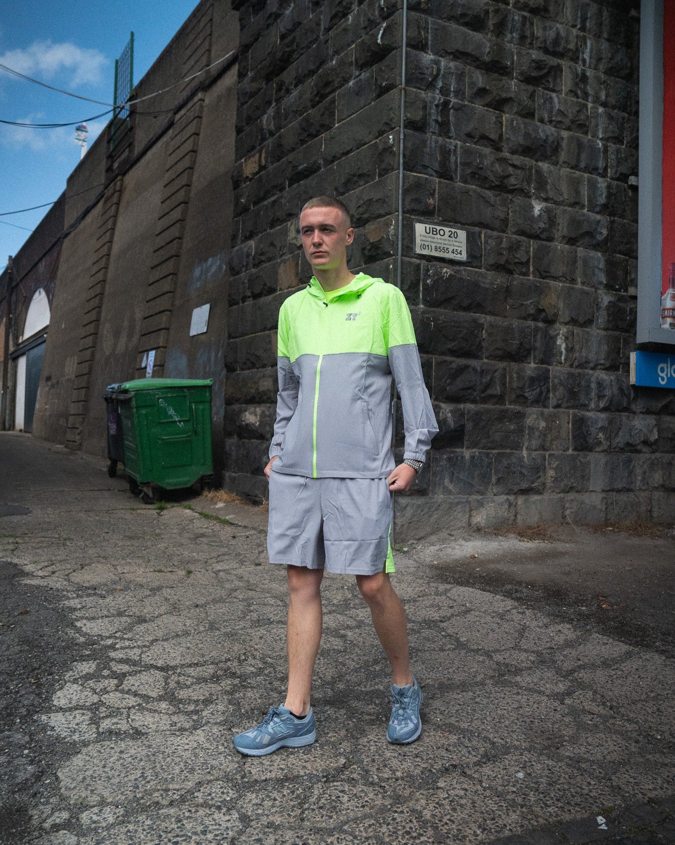 VIVID SHORTSETS SET + TSHIRT(LIME GREEN & GREY)